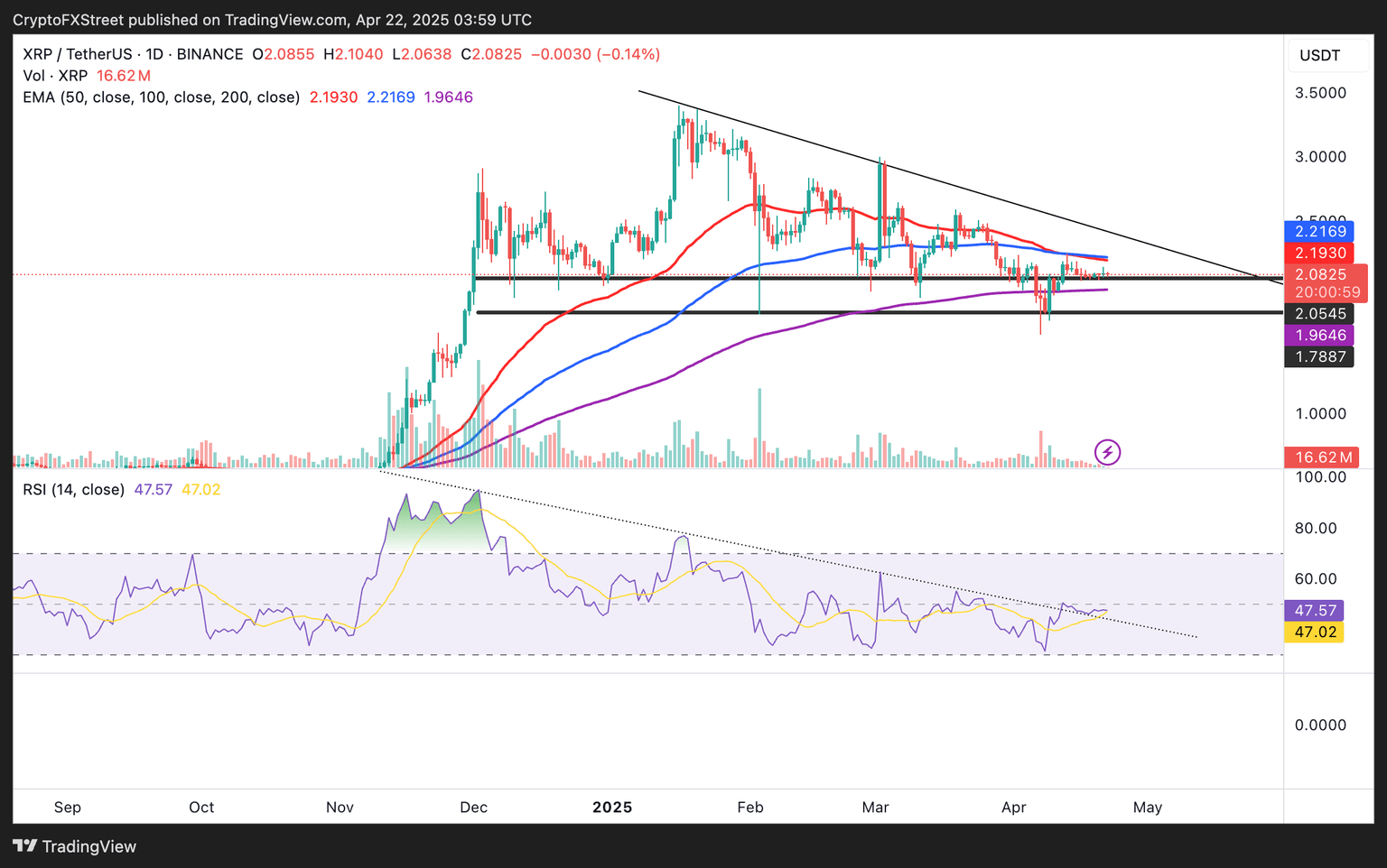 However, if support at $2.00 is lost, XRP may drop to retest the 200-day EMA around $1.96 before extending the leg down to the April 7 low of $1.62, seeking liquidity ahead of another recovery attempt.