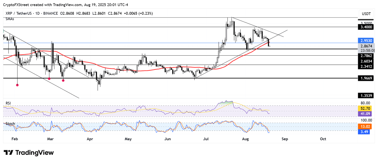 A failure to recover the 50-day SMA could push XRP to the support at $2.78. Further down, the $2.6 level could help cushion losses if the price decline stretches.