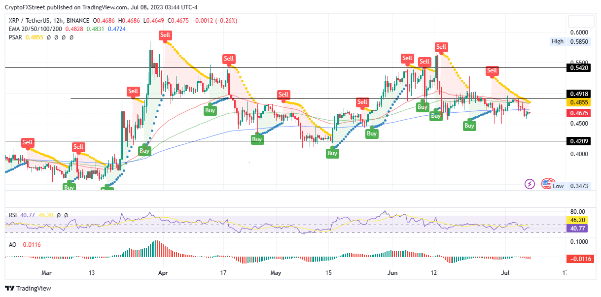With the Parabolic SAR indicators tracking Ripple price from above since June 27, XRP has been bearish for almost two weeks, catalyzed by falling buyer momentum indicated by the trajectory of the Relative Strength Index (RSI).