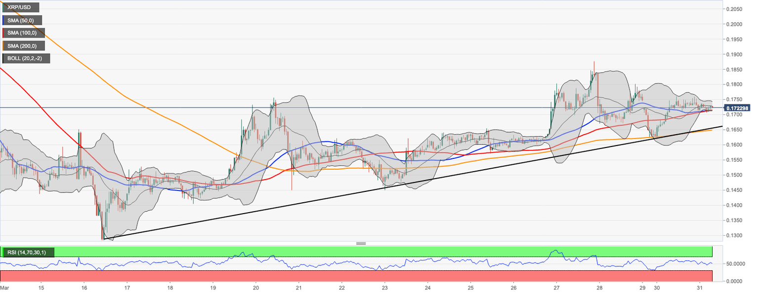 On the intraday charts, XRP/USD moves along the short-term upside trend from March 16 low. This trend line was verified as strong support on March 23 and more recently on March 29. Currently. it created a reliable backstop for XRP/USD at $0.1655, while SMA200 1-hour located right below this area serves as and additional support. Once it is out of the way, the downside is likely to gain traction with the next focus on $0.1600.