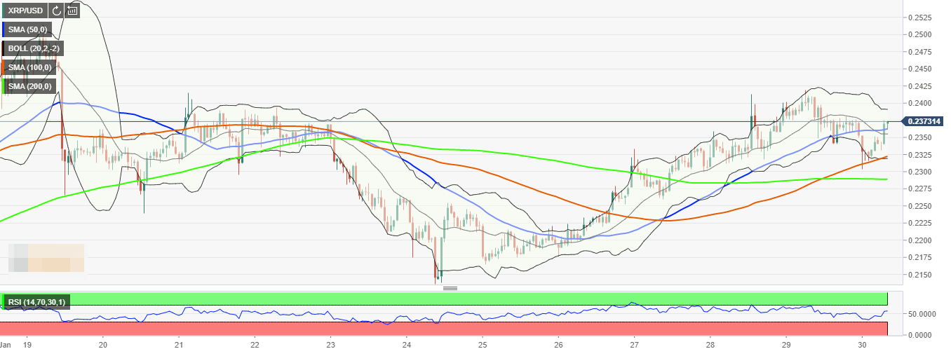 On the intraday charts, SMA100 1-hour has been providing strong support for the price. The price attempted to break it during early Asian hours but reversed to the upside as new buyers popped in on approach to psychological $0.2300. This development implies that the coin is still moving within a short-term bullish channel with the next recovery target created by SMA50 daily at $0.2360. Once it is out of the way, the recovery will gain traction and push the price towards $0.2400. This psychological barrier is reinforced by the upper boundary of the 1-hour Bolinger Band, which means it will be hart to take it from the first attempt.