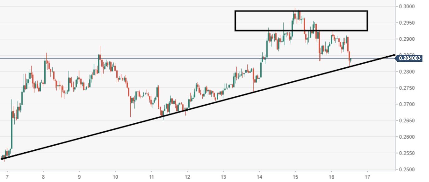 - XRP/USD has been on the decline since being hit with rejection at the pychological $0.3000 mark.