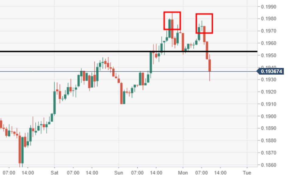 - There is a big barrier in the way of further upside seen at the psychological $0.2000 mark.