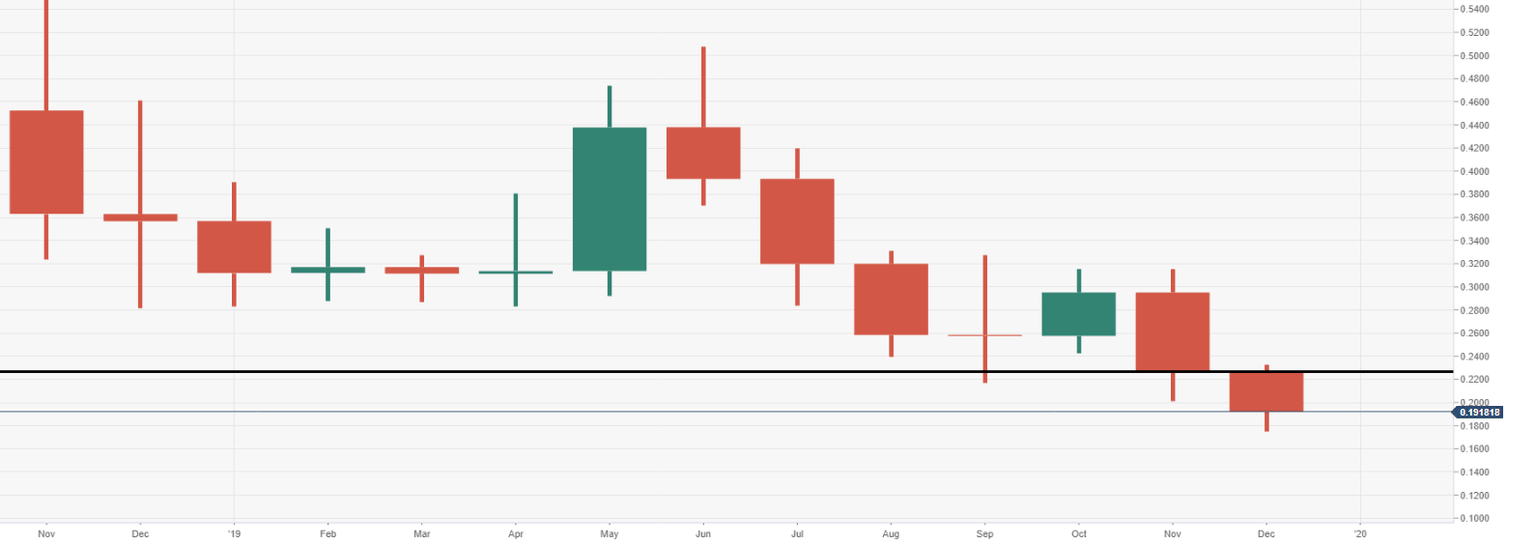 The price is set for another closure on the month in the red, it markets two consecutive now. As XRP heads into the new year stuck within a bearish trend, with little signs of that changing anytime soon for now. The price is sitting below critical monthly support at $0.2300.