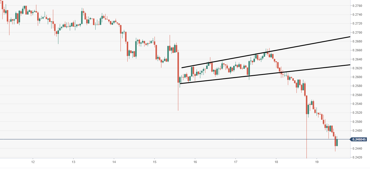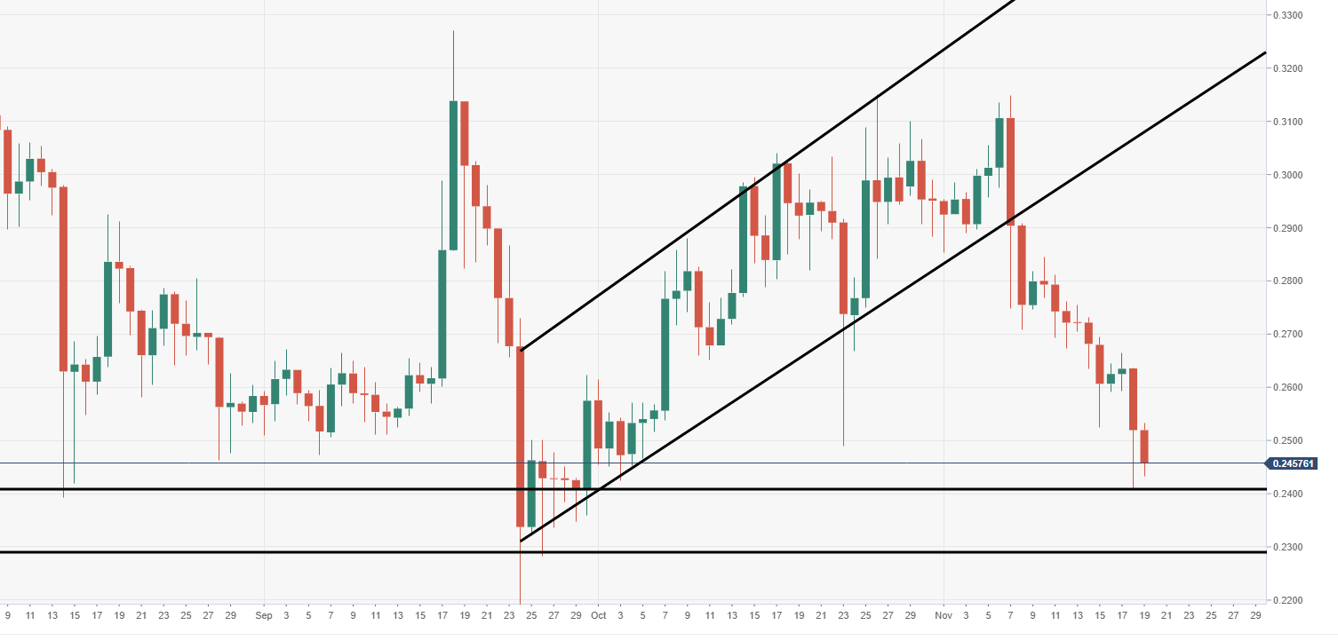 - XRP/USD bears have breached a critical price zone around the $0.2500 territory.
