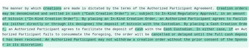 Cash creates makes sense IMO bc broker dealers can’t deal in bitcoin so doing cash creates puts onus on issuers to transact in bitcoin and keeps broker dealers from having to use unregistered subsidiaries or third party firms to deal w the btc. Less limitations for them overall