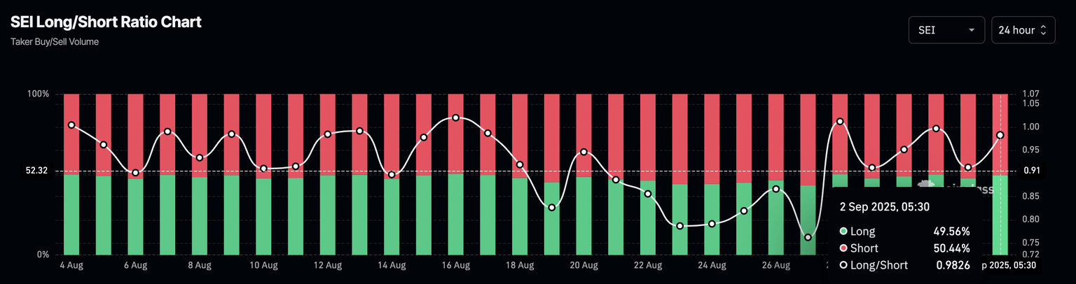 SEI long/short ratio chart. Source: Coinglass
