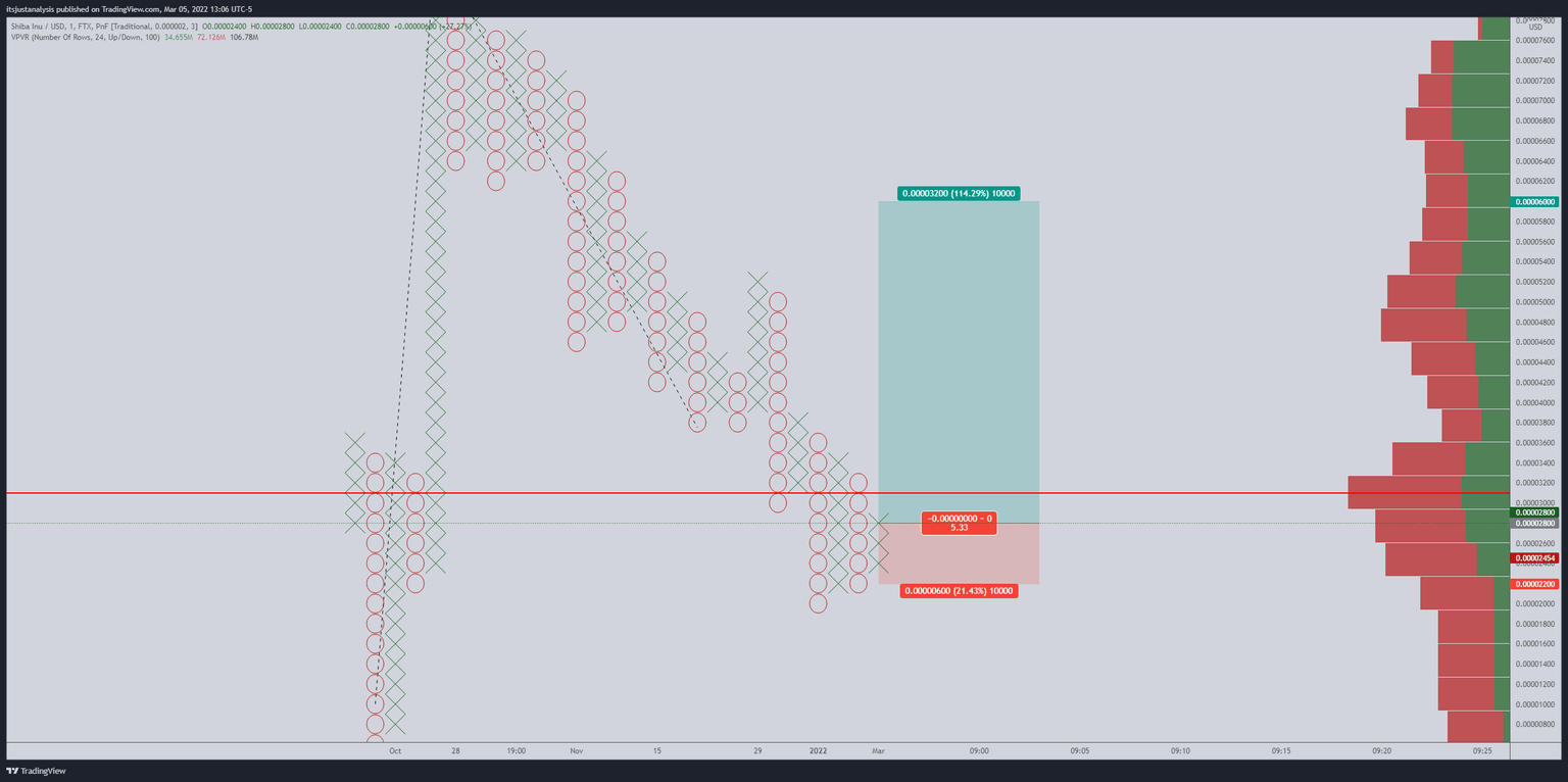 SHIBA/USDT $0.000002/3-box Reversal Point and Figure Chart
