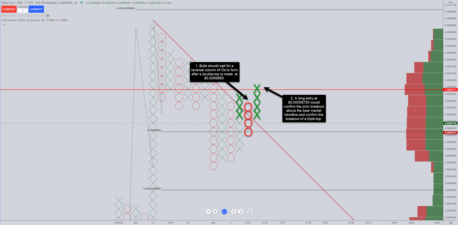 A breakout above the anticipated double-top would likely face immediate and long-term selling pressure. So instead, bulls should look for an initial pullback after the double-top is made then wait for a triple-top to develop. Waiting for a triple-top or split triple-top is essential to confirm that Shiba Inu price will push on to new all-time highs.