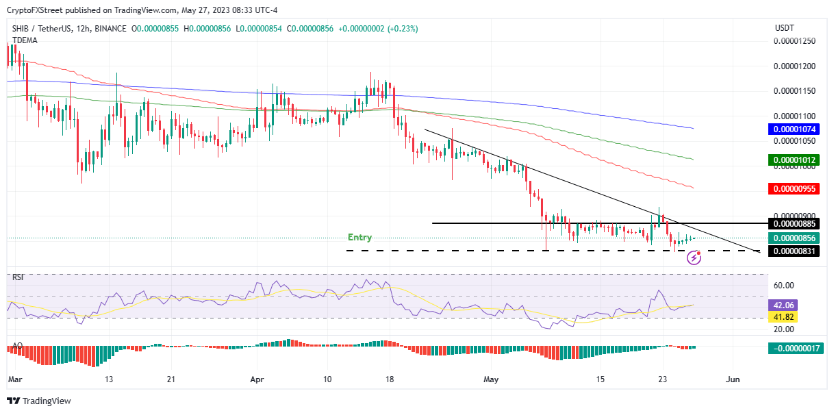 If seller momentum prevails, however, Shiba Inu price could drop below the $0.00000831 level. A decisive 12-hour candlestick close below this level would write off the bullish outlook.