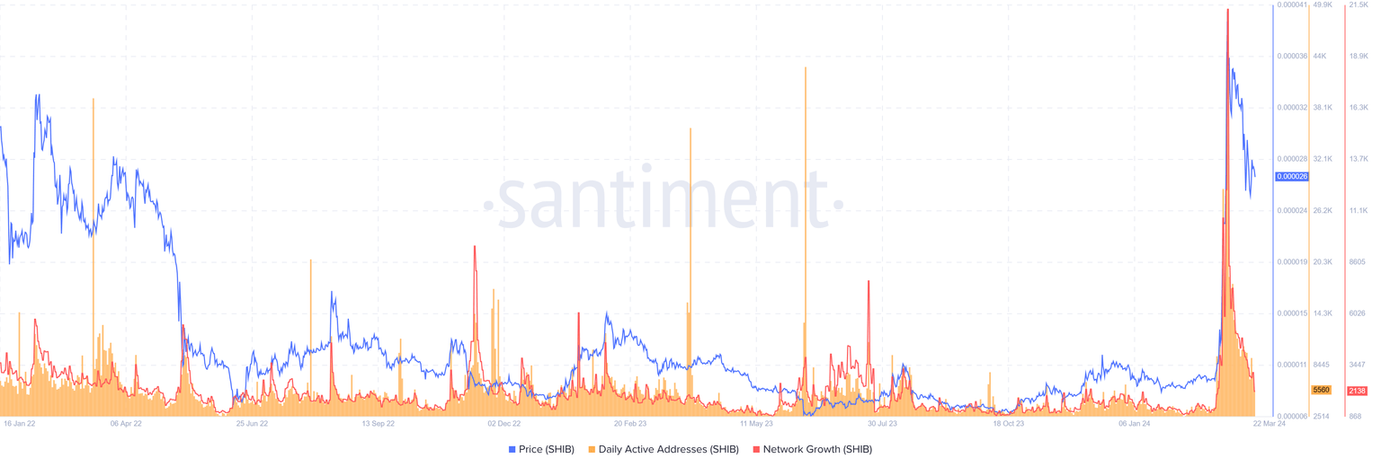 SHIB Santiment: Active Addresses and Network Growth