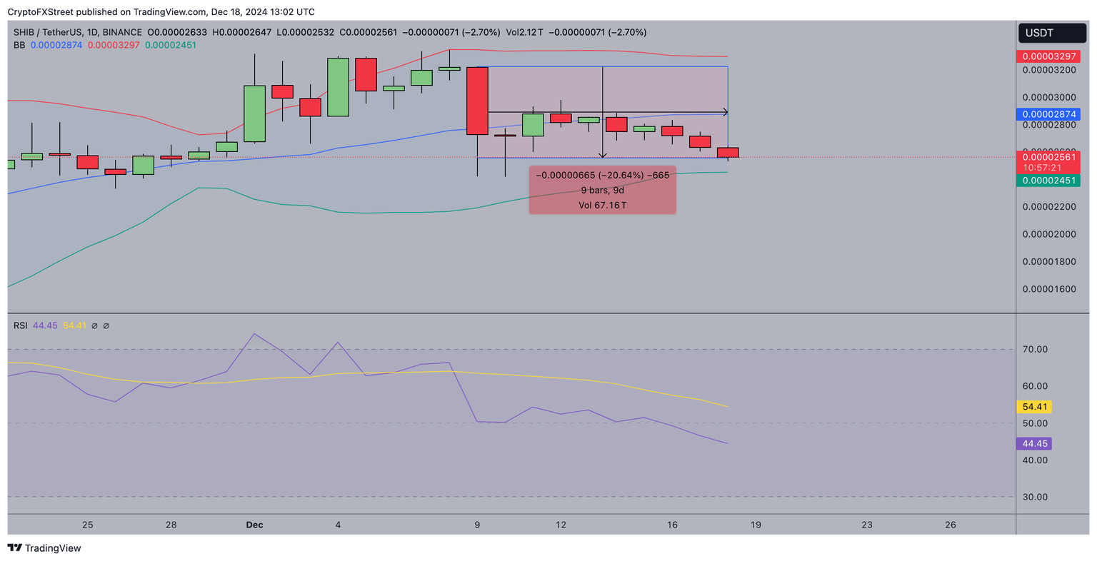 - Shiba Inu price plunges towards $0.000025 on Wednesday, losing 20% since December 9.