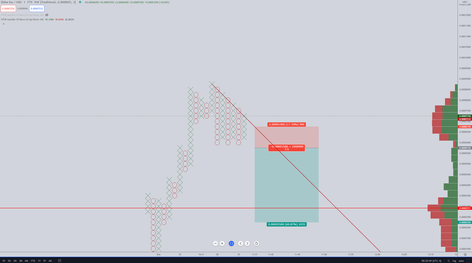 SHIB/USDT $0.0000025/3-box Reversal Point and Figure Chart