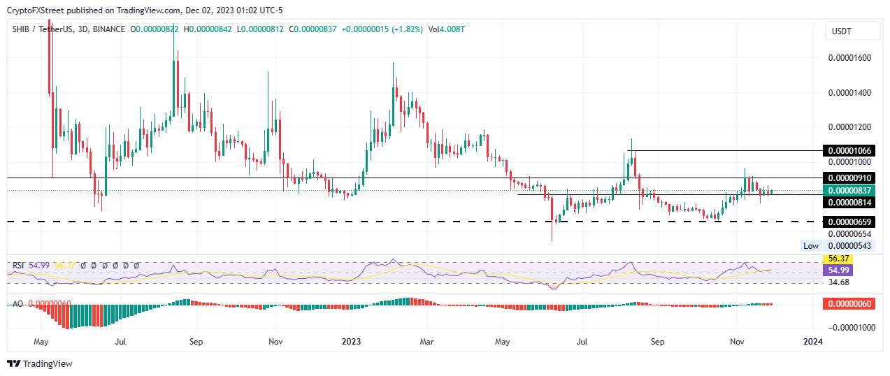 In a highly bullish case, the gains could extend for Shiba Inu price to shed one zero and test the $0.00001066 resistance level. Such a move would constitute a 30% climb above current levels.