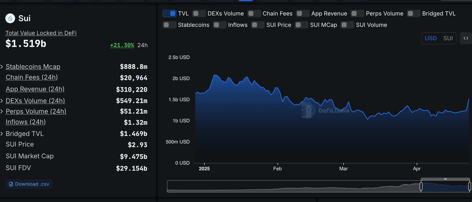 - SUI's price approaches $3.00 as its DeFi ecosystem TVL surges over 20% in 24 hours, reaching $1.52 billion.