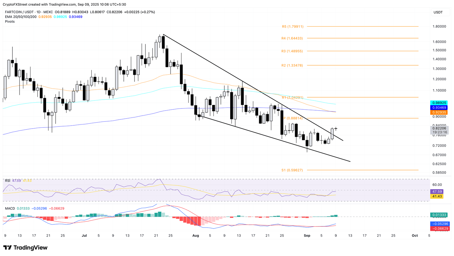 FARTCOIN trades above the $0.80 level at press time on Tuesday, adding to the 8% gains from Monday. The meme coin confirmed the breakout of a falling wedge pattern on the daily chart with Monday’s recovery.