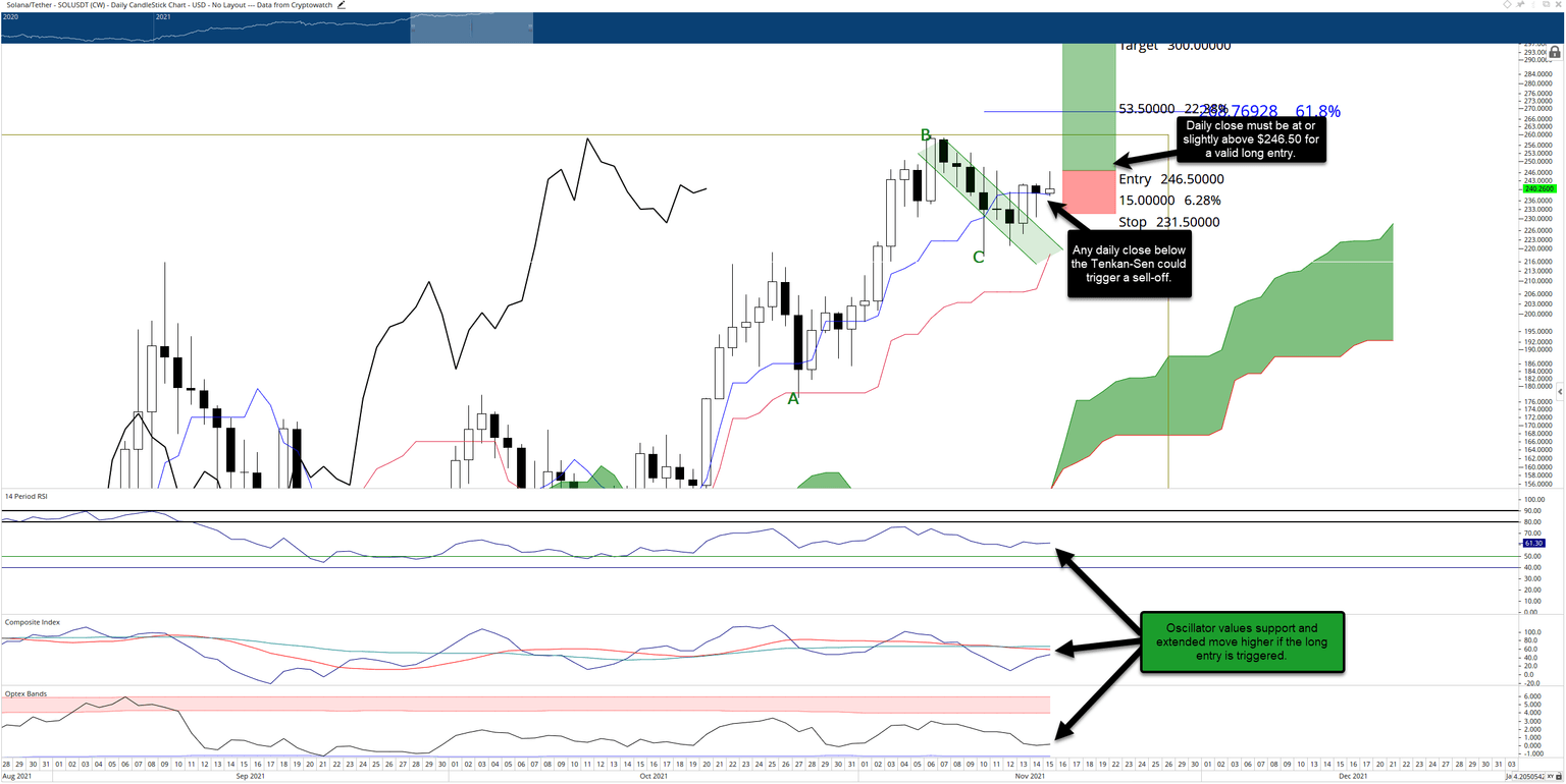 Solana price is very close to generating a greater than 22% gain. For that rise to occur, Solana must close at or slightly above the prior swing high of $246.50. If that occurs, then theoretical long entry at $246.50 could be triggered.