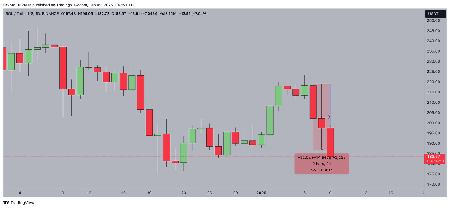 Solana price stabilizes at $185 after 15% losses in 2 days