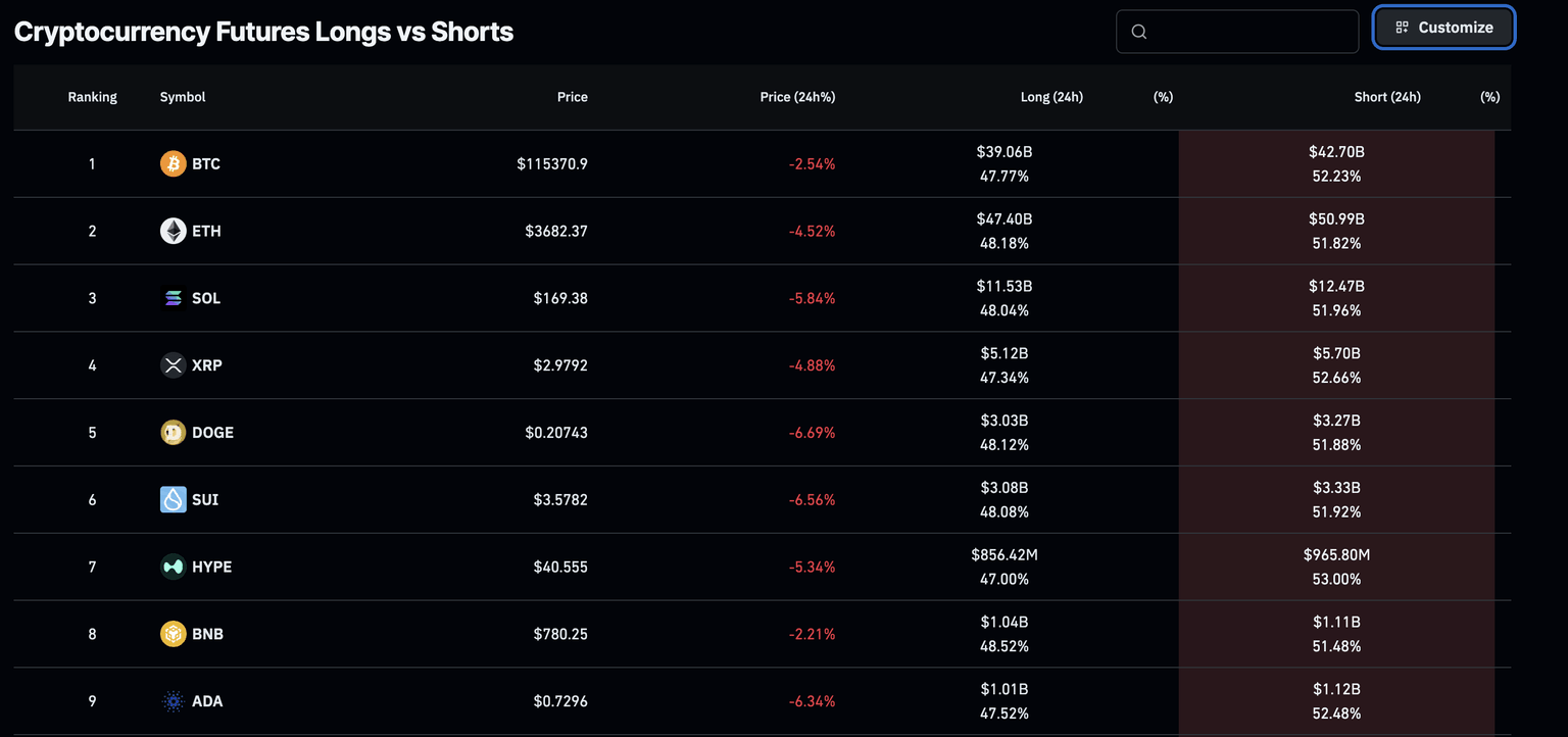Based on the long vs short positions, Solana short positions account for 51.96% outpacing 48.04% of long futures over the last 24 hours. Similarly, Cardano and Dogecoin short positions have surged to 52.48% and 51.88%, respectively.