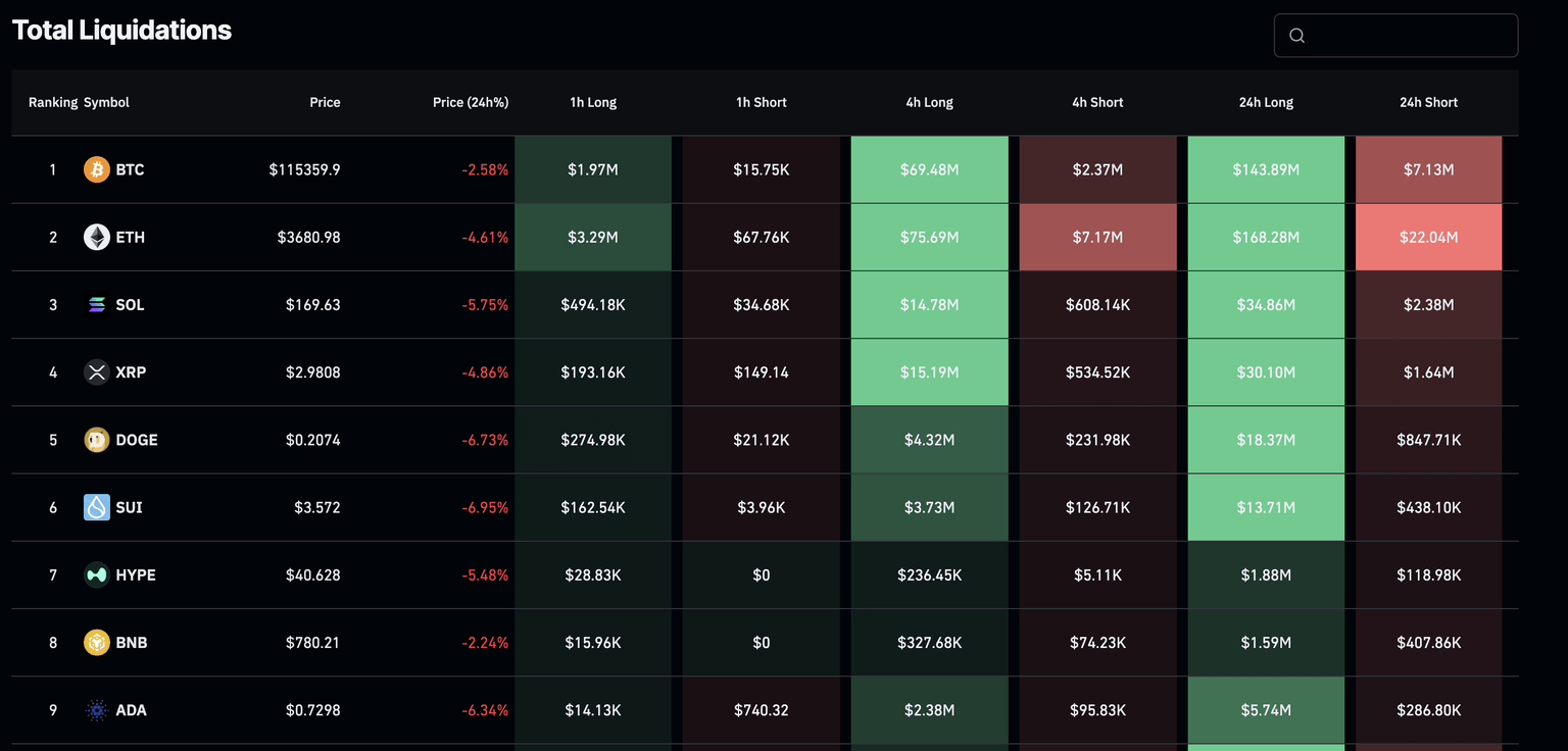 Solana, Dogecoin, and Cardano lead decline amid $635 million crypto market liquidations