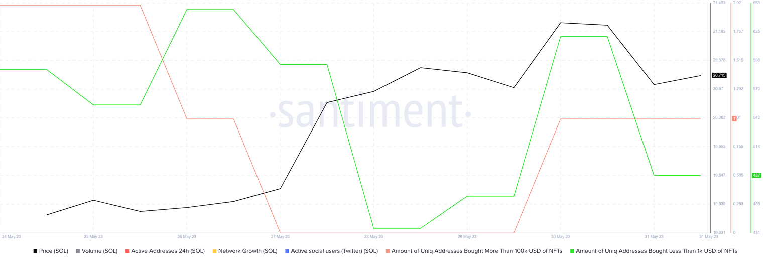 Santiment has also supported this development with a significant increase in the number of unique addresses that bought more than 100,000 SOL and those that bought less than 100,000.