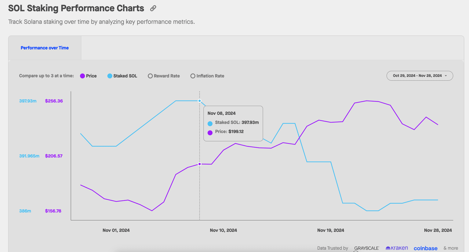 The latest data shows the total staked value has now declined to 387.1 million SOL on Thursday.