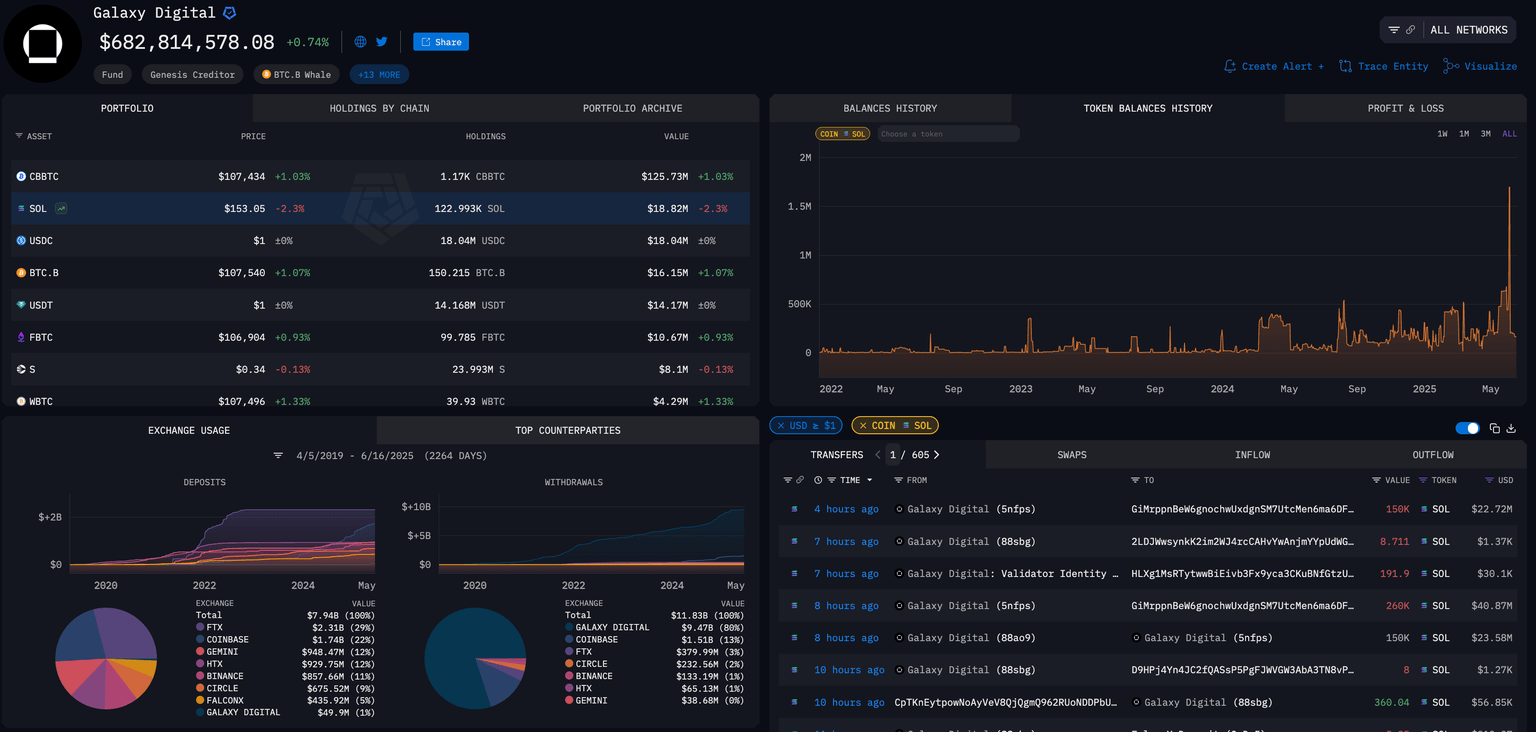Galaxy Digital holdings. Source: Arkham Intelligence
