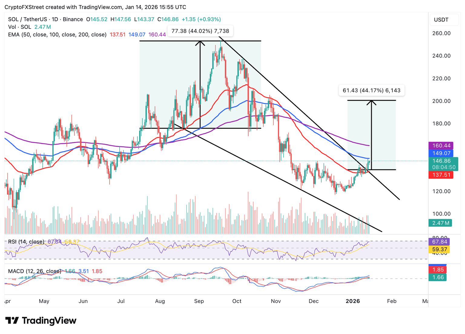Technical outlook: Solana’s falling wedge pattern breakout eyes $200