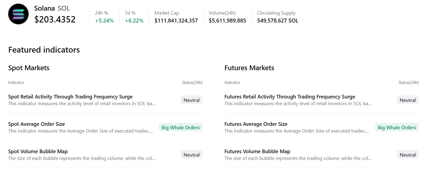 CryptoQuant’s summary data supports the bullish outlook, as SOL’s spot and futures markets show large whale orders and buy dominance, signaling a potential rally ahead.
