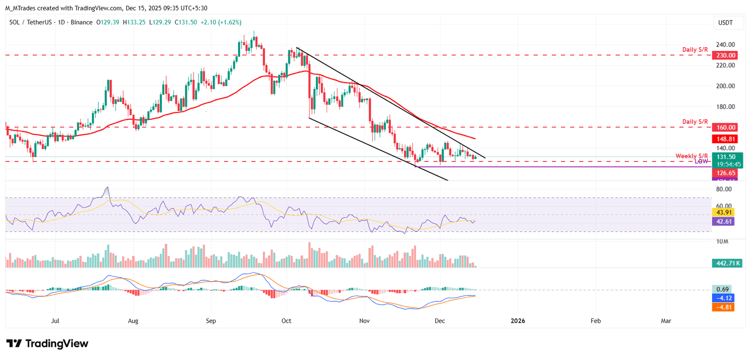 Solana (SOL) price hovers above $131 at the time of writing on Monday, nearing the upper boundary of a falling wedge pattern, awaiting a decisive breakout. On the institutional side, demand for spot Solana Exchange-Traded Funds (ETFs) remained firm, pushing total assets under management (AUM) to nearly $1 billion since launch. Moreover, the technical outlook suggests a potential upside breakout, with bulls aiming for levels above $160.