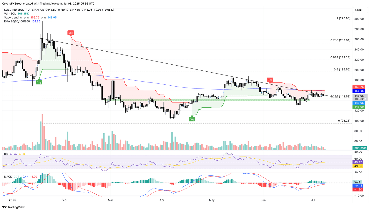 Solana (SOL) ticks marginally higher on Tuesday as the selling pressure persists following the near 2% drop on Monday. The technical outlook indicates mixed signals as the trend momentum subsides while SOL stands at a crucial crossroads.