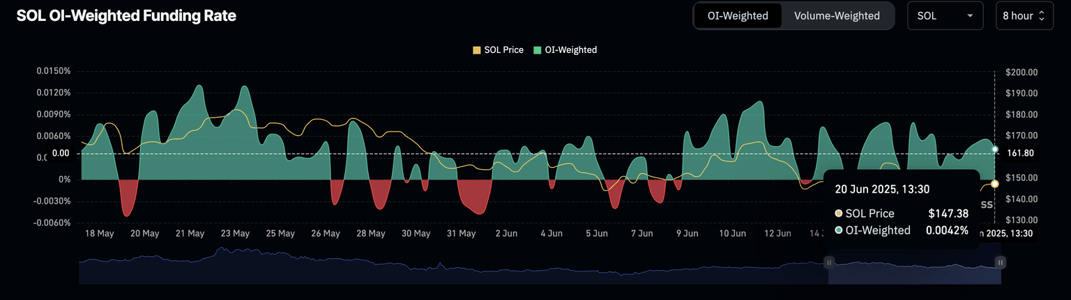 SOL OI-weighted funding rate. Source: Coinglass