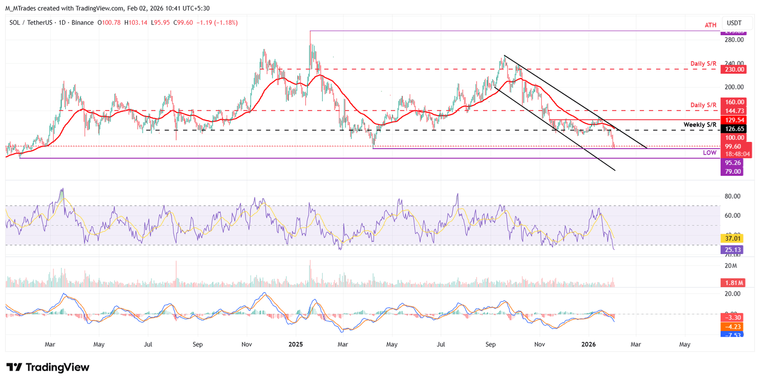 Solana Price Forecast: SOL slips below $100, risks deeper correction