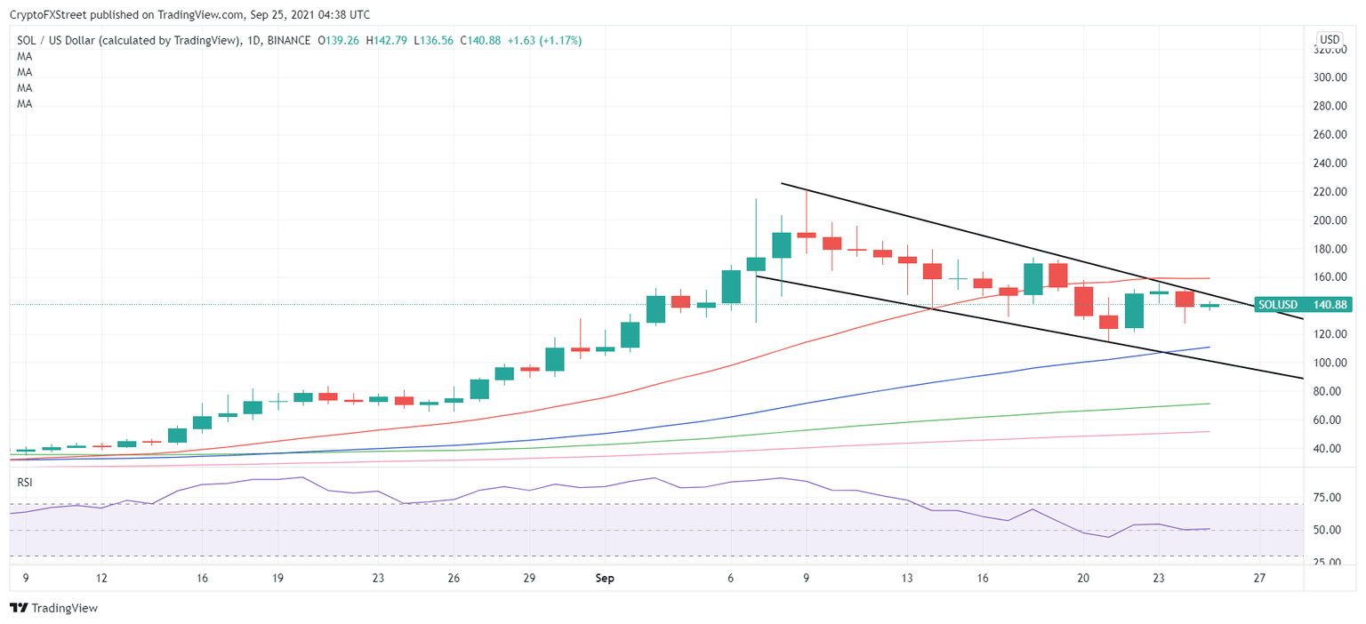- Solana price is teasing a falling wedge breakout on the daily chart.
