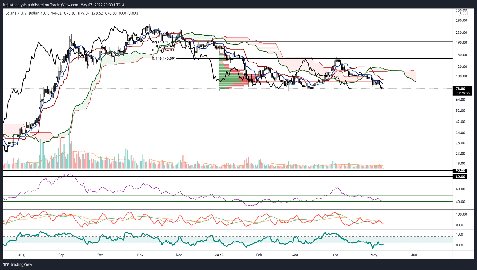 The longer Solana price spends below the daily Ichimoku Cloud and the 2022 Volume Profile ($90), it is increasingly likely that a flash crash towards the $50 level will occur.