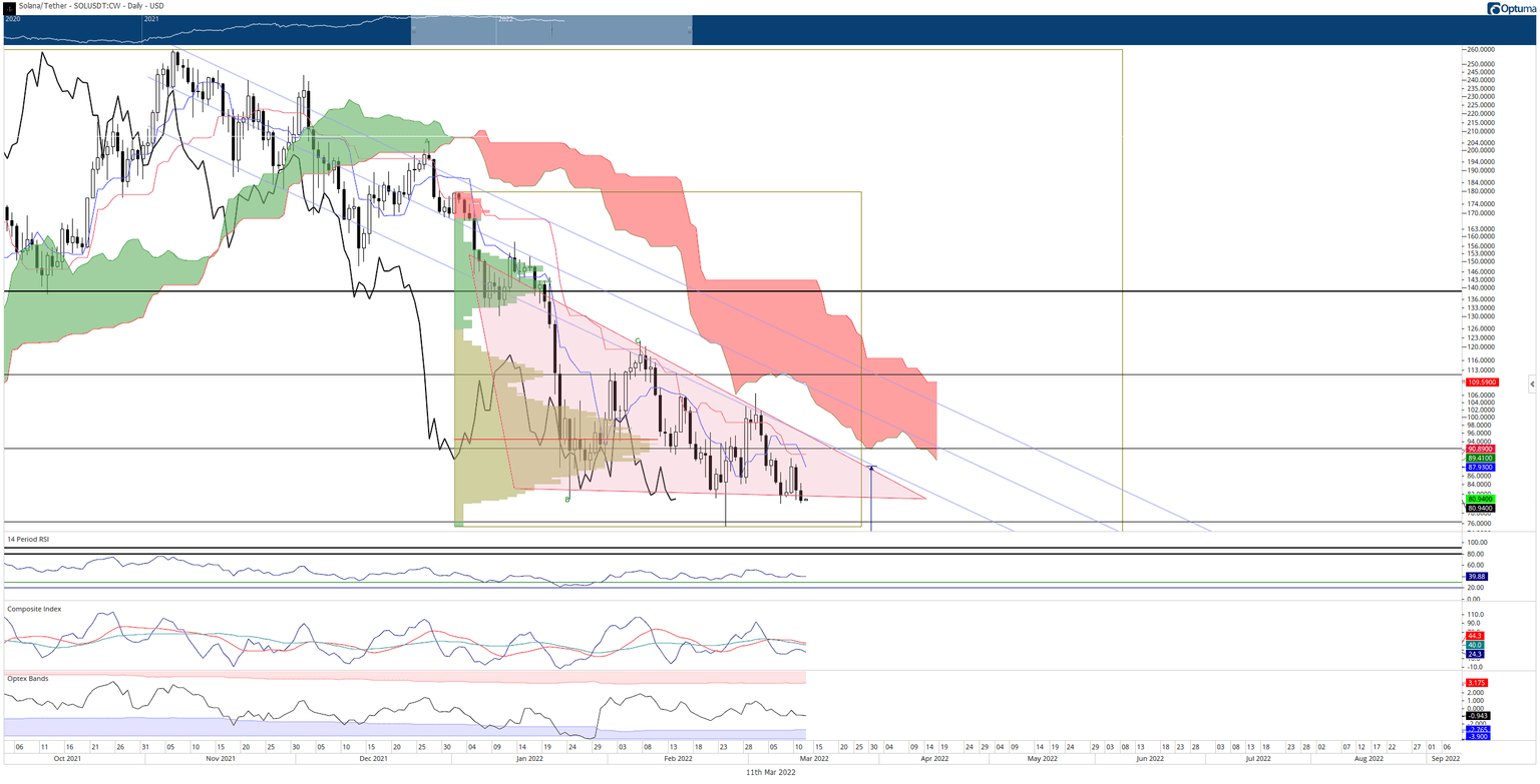 The risks to the downside for Solana price are substantial. The extended 2021 Volume Profile shows a massive gap between $50 and $75. Solana appears to almost certainly want to test $75, which is just above the 2022 low. $75 has a small volume node, and the psychological importance as the only factors as support. If it fails, then Solana price will likely experience a flash-crash down to the $50 value area.
