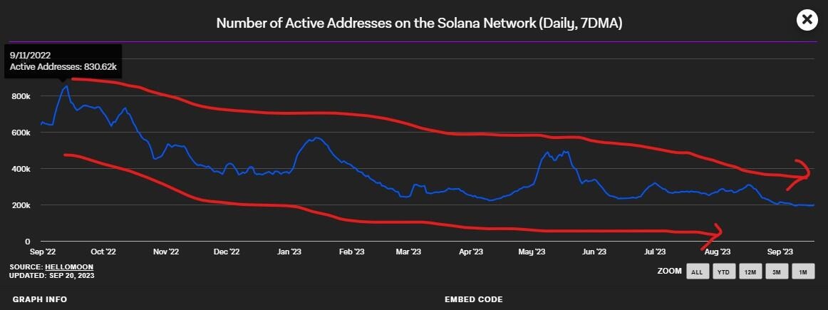 However, there are concerns about the volume of the number of daily active addresses failing to mirror the optimism indicated by Solana price.