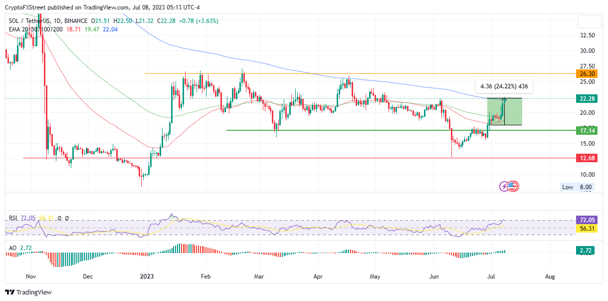 With analysts predicting a continued uptrend, Solana price could breach the $25.00 mark, or in a highly bullish case, revisit the range high at $26.30, levels last seen in February.