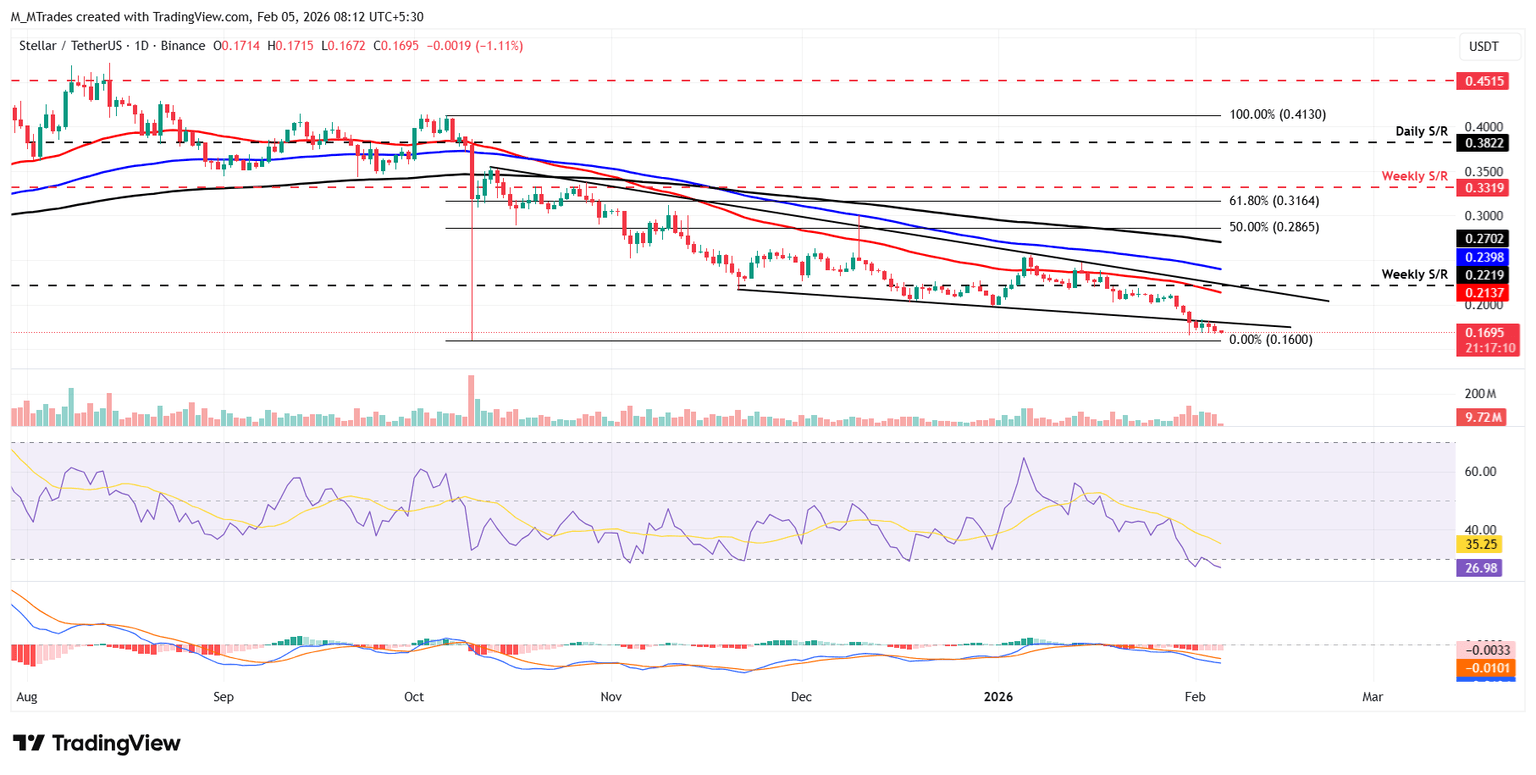 Stellar (XLM) price is extending its correction, trading below $0.167 at the time of writing on Thursday after being rejected at a key level. The derivatives data shows signs of weakness, with XLM’s short bets rising amid falling Open Interest (OI). On the technical side, bears remain in control, aiming for lower lows in XLM.
