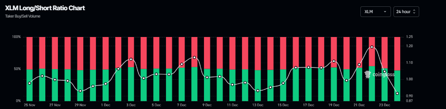 - XLM’s declining open interest and rising short bets in the derivatives market reinforce bearish sentiment.