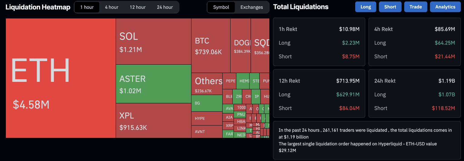 - Crypto market liquidation tops $1 billion, signaling a risk-off sentiment.