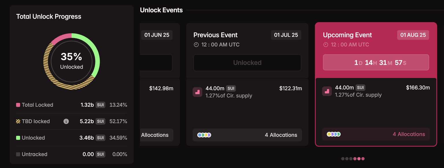 In accordance with the SUI roadmap, 44 million SUI tokens worth $166.30 million will be unlocked on Friday. The unlock will increase the circulating supply by 1.28%.