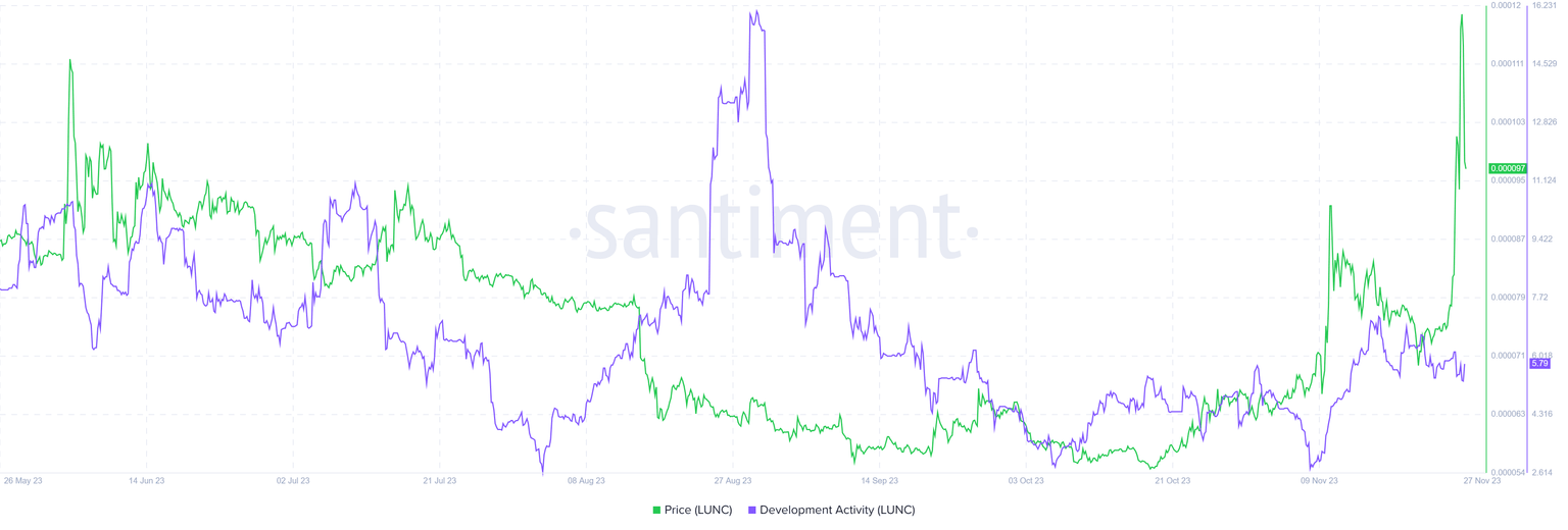 Further, the network has also been keen on development activity, with this metric showing a consistence climb. It points to development events in the LUNC ecosystem as indicated in the project’s public Github repository,