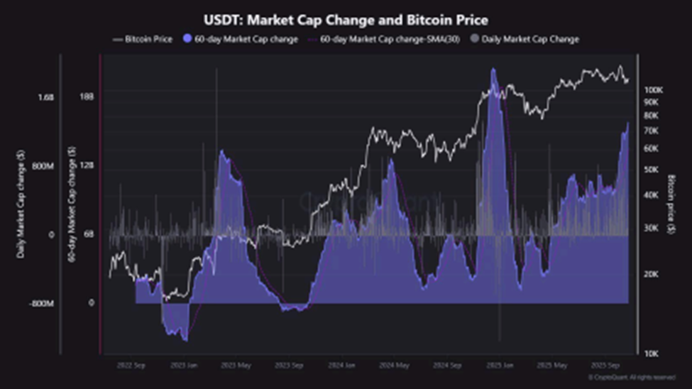 USDT Market Cap Change vs Bitcoin Price. Source: CryptoQuant.