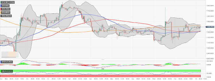 BTC/USD is hovering around $7,400 during early Asian hours; This area is packed with technical levels, which makes it hard to break. Once it happens, the upside may gain traction with the next focus on $7,700 and the recent high of $7,700. On the downside, thee coin is supported by a confluence of SMA50 (Simple Moving Average), SMA100 and the lower line of the Bollinger Band 1-hour clustered on approach to $7,300.