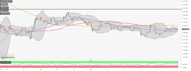 Ethereum is struggling to settle above $148.00; however, with little success so far. At the time of writing, ETHUSD is changing hands at $147.98, which is 2% higher from this time on Thursday and unchanged since the beginning of the day. The initial support awaits us at $147.00. It is reinforced by SMA50 1-hour and the lower line of 1-hour Bollinger Band. The upside is limited by $148.00 and $148.70 (the upper border of 4-hour Bollinger Band). Once it is out of the way, $150.00 will come back into focus.