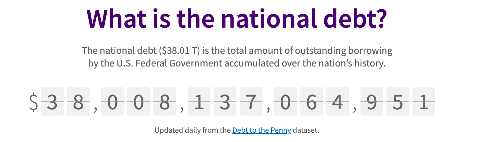 The US Government debt has reached $38 trillion as of October 27, up from $24.71 trillion in 2015. Of the total debt, $30.28 trillion was held by the public, according to the September US Treasury Monthly Statement of the Public Debt.