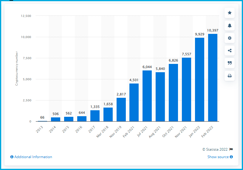 Coinmarketcap.com lists 9,425 coins. More than all the world's fiat currencies combined. It's hard to believe that the only cryptocurrency available 13-years ago was Bitcoin. Every sector of the economy now has a cryptocurrency.