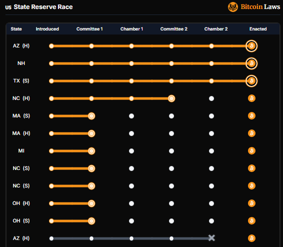 Apart from Trump’s administration working on its Strategic Bitcoin Reserve, many US states joined the race for their own Bitcoin reserves, as shown in the chart below.