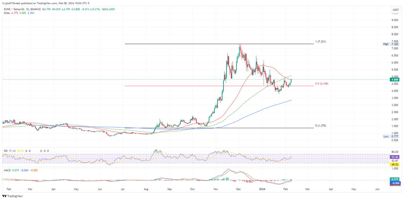 - RUNE could make a 15% climb to $5.50, levels last tested on January 4 with technical and on-chain tailwinds.